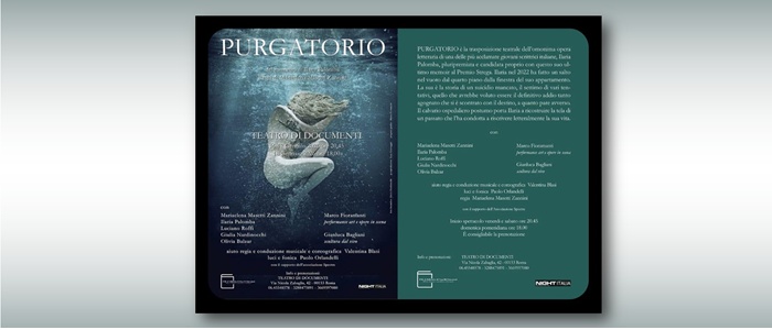 “Purgatorio” è un’opera profondamente autobiografica che affonda le proprie radici nella trilogia letteraria dell’autrice composta da Scisma, Restituzione e Purgatorio, un percorso in cui vita e scrittura si intrecciano in un vorticoso unicum continuum. La drammaturgia teatrale attinge direttamente a questa materia viva e si colloca nel solco del teatro verità, cifra poetica della regista, dove la lirica e la multidisciplinarità artistica diventano strumenti per restituire la complessità del vissuto umano senza mediazioni.
